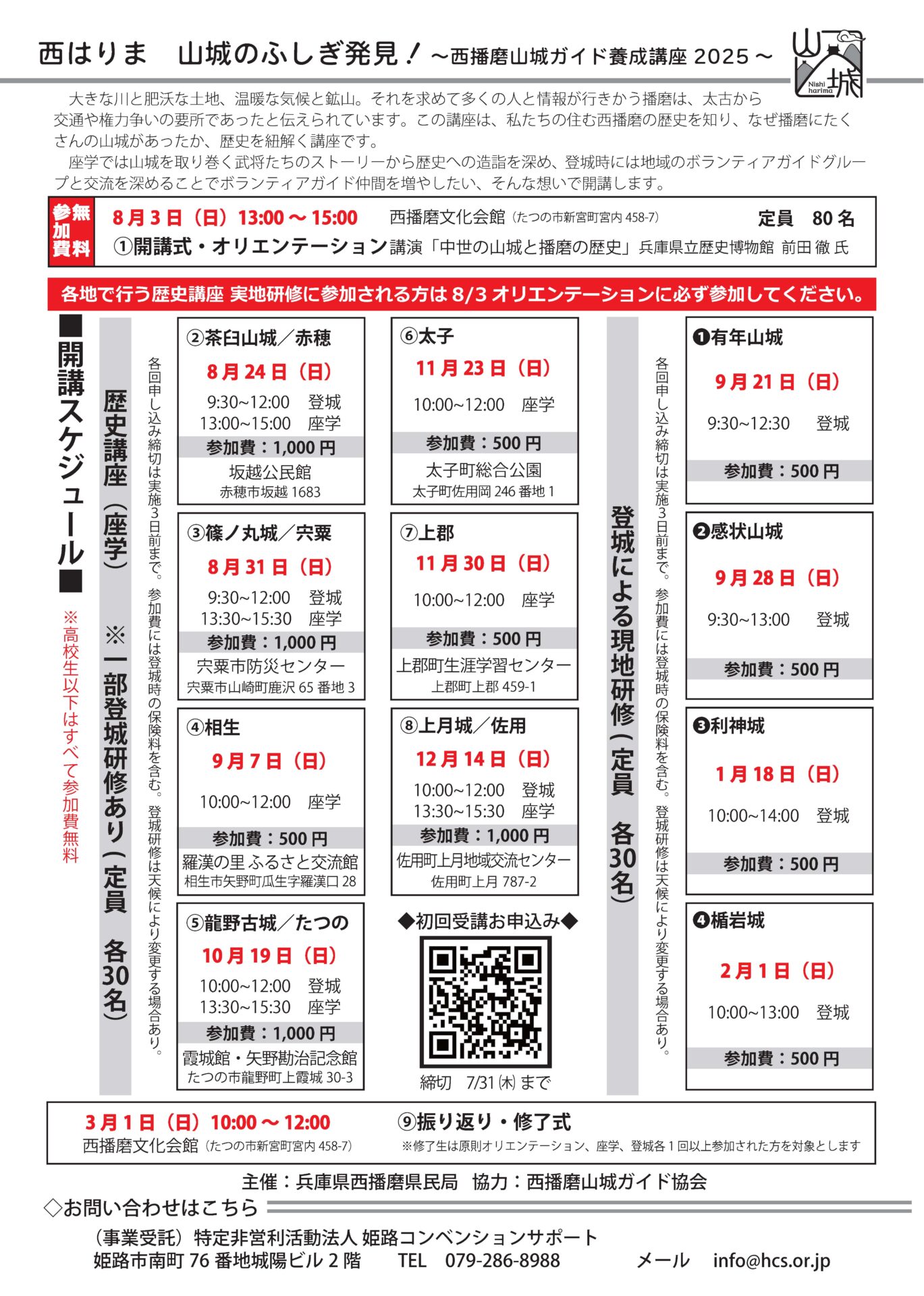 【西播磨山城ガイド講座2025】受講生募集スタート✨