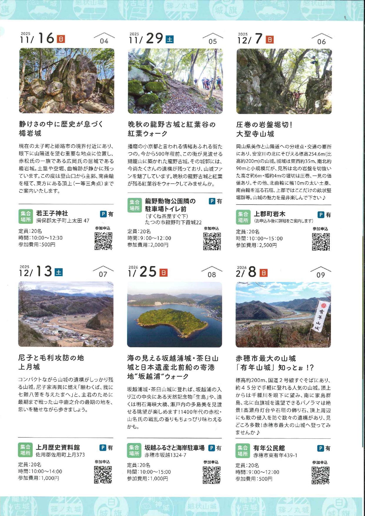 今年は、9つの山城を登城いたします。