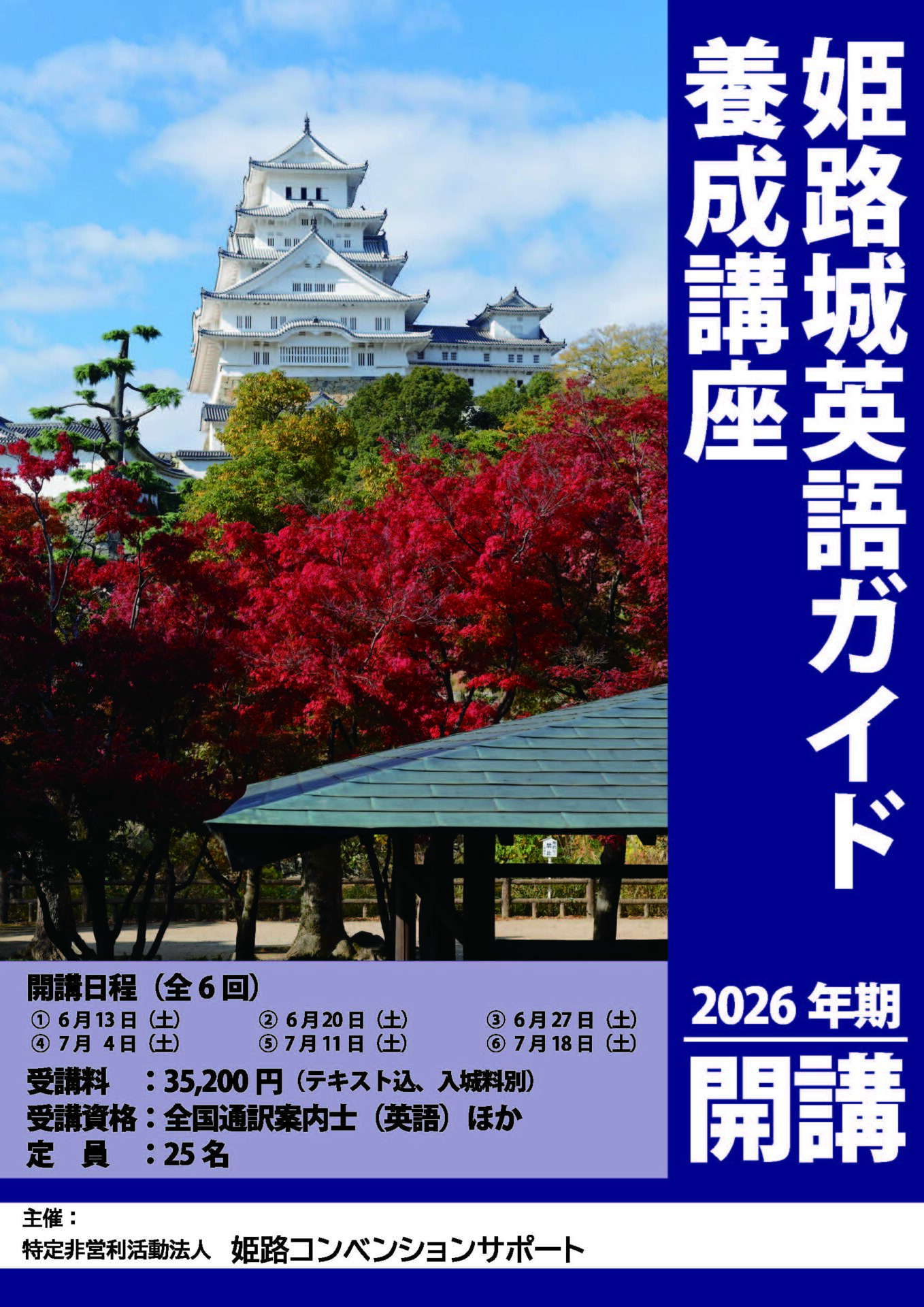 さて、今年度も2026年度姫路城英語ガイド養成講座を下記の通り開講します。